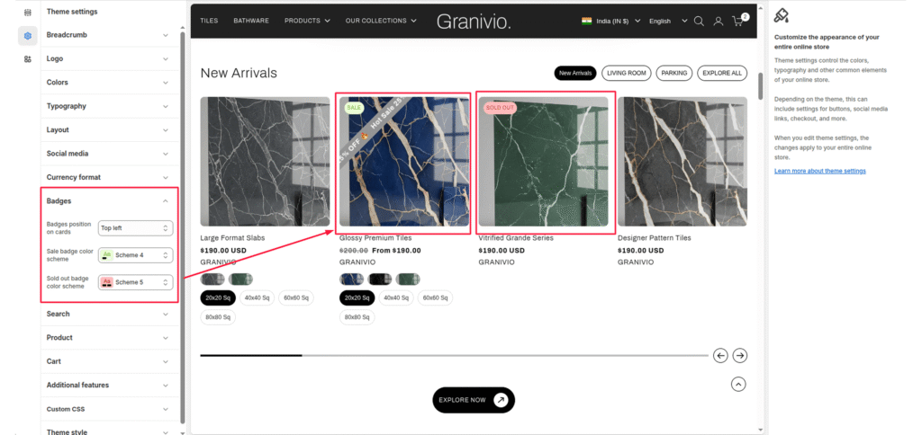You can set the badge position on cards, top left/top right, and bottom left/bottom right.