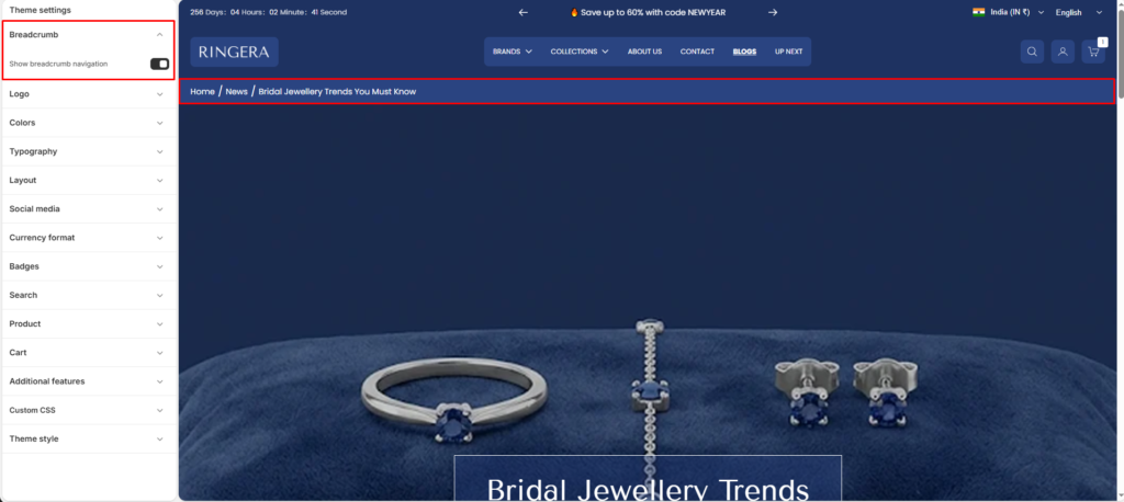 This guide describes the Theme settings > Breadcrumbs options.